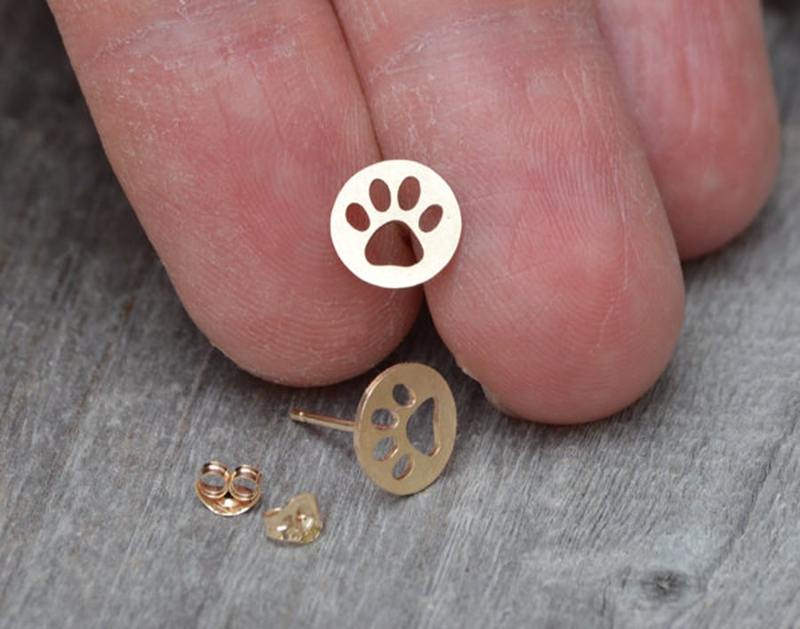 Product id: 9ct gold paw store print earrings