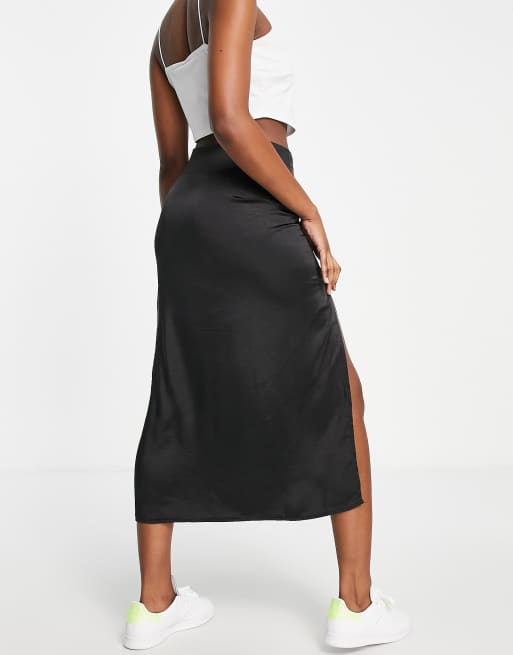 Product id: Black satin midi store skirt with split