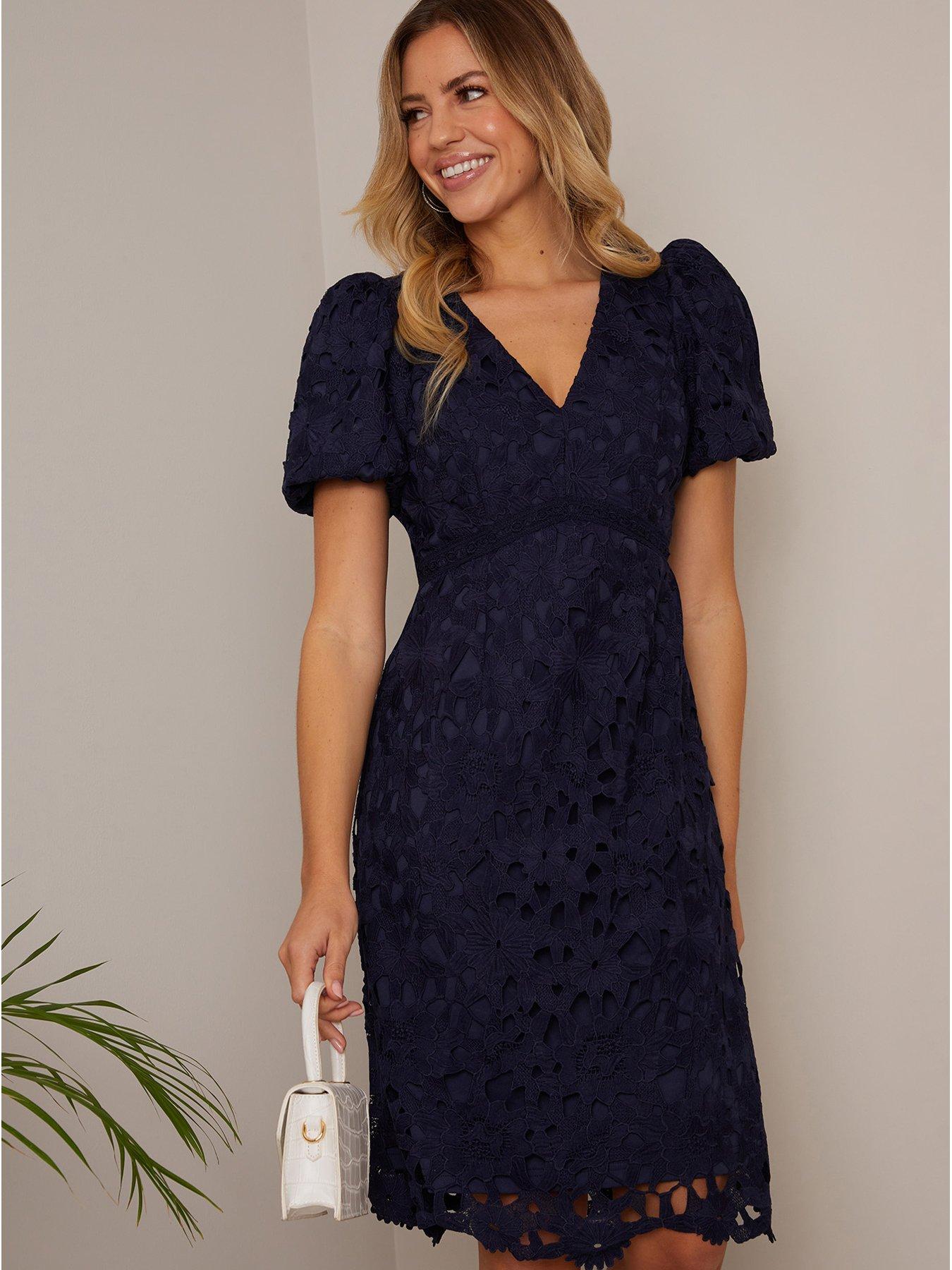 Product id: Chi chi london premium lace midi dress with store cap sleeve in navy