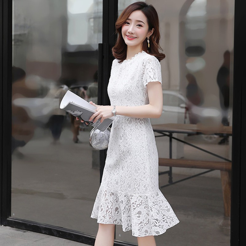 Product id: Short sleeve lace store dress white