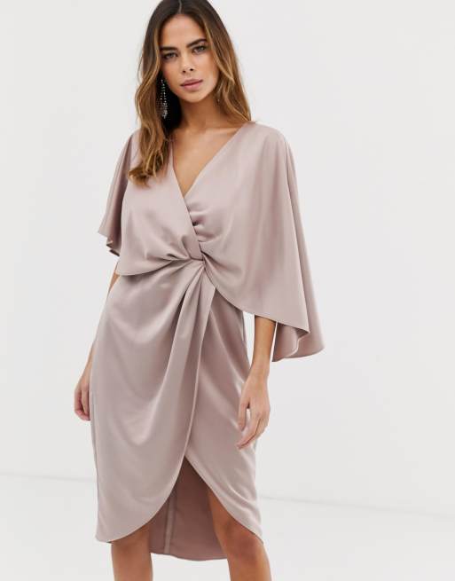 Product id: Asos design satin kimono midi dress with knot store front and asymmetric sleeve